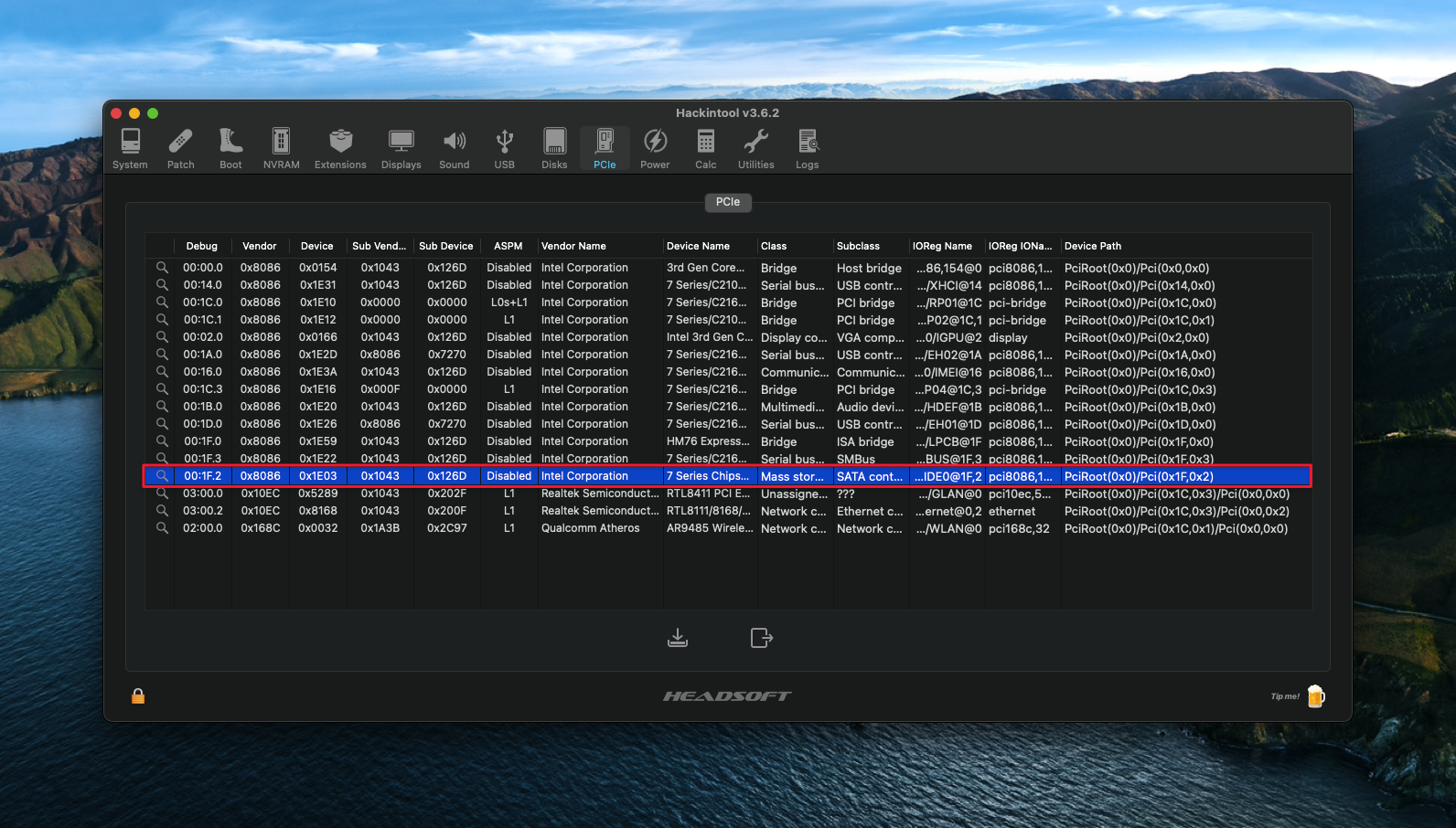 B5: Mở hackintool lên tìm ở phần device name là sata controller và nhìn vào tab device path.
