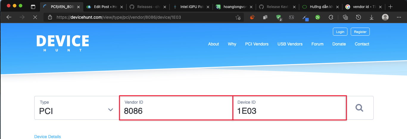 B4: tìm đến model các bạn cần fake nhập vendor id vào tìm đến model sát cấu hình nhất và lấy device id.