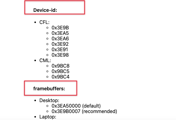 Ngoài ra bạn còn có thể dùng boot-arg để inject framebuffer vd: