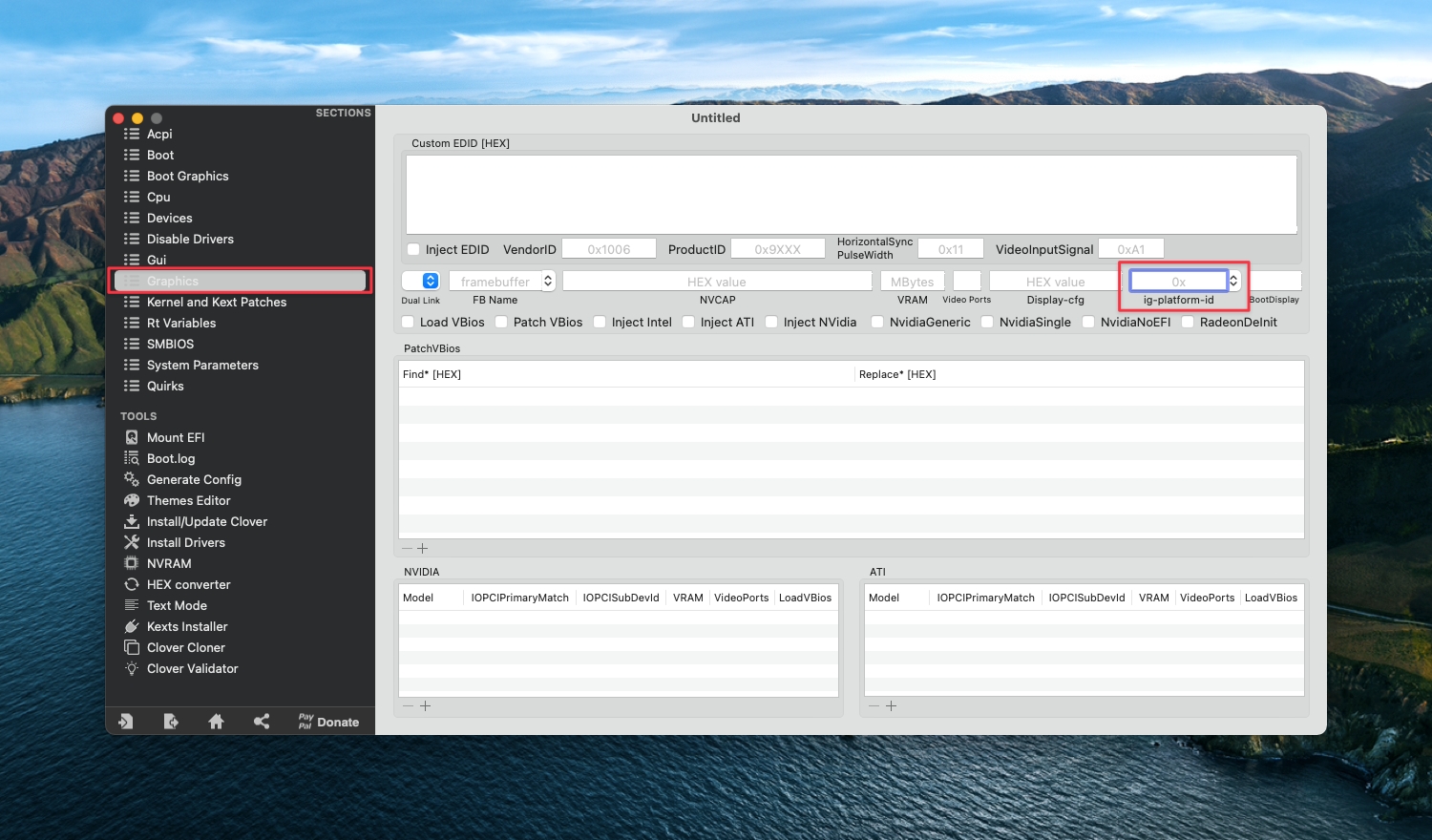 Nếu các bạn dùng iGPU cần fake device-id thì có thể dùng Hackintool để fake thành 1 dòng cụ thể như sau: