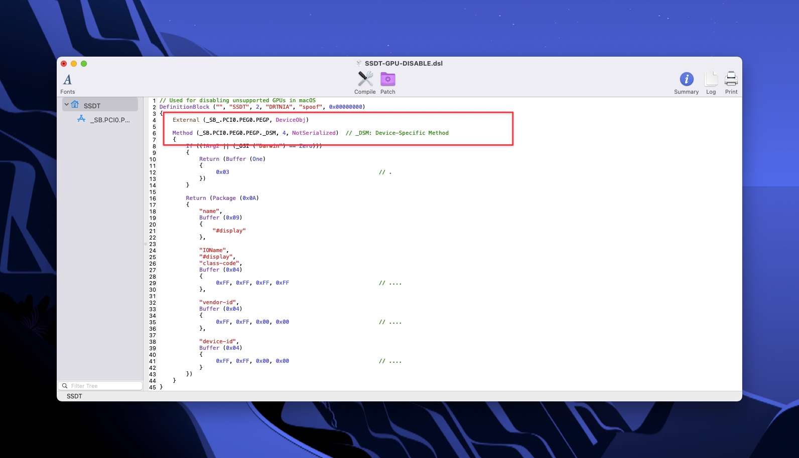 \_SB_.PC02.BR2A.PEGPB4: Sửa ACPI path của SSDT thành ACPI path vừa xác định ở trên cụ thể những phần cần phải sửa là