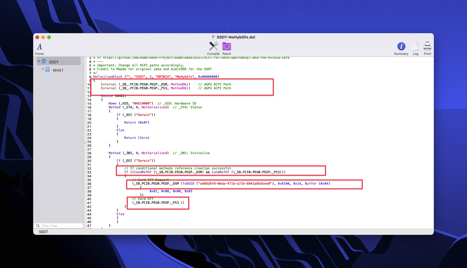 Source tham khảo: Disabling laptop dGPUs (SSDT-dGPU-Off/NoHybGfx) | Getting Started With ACPI (dortania.github.io)