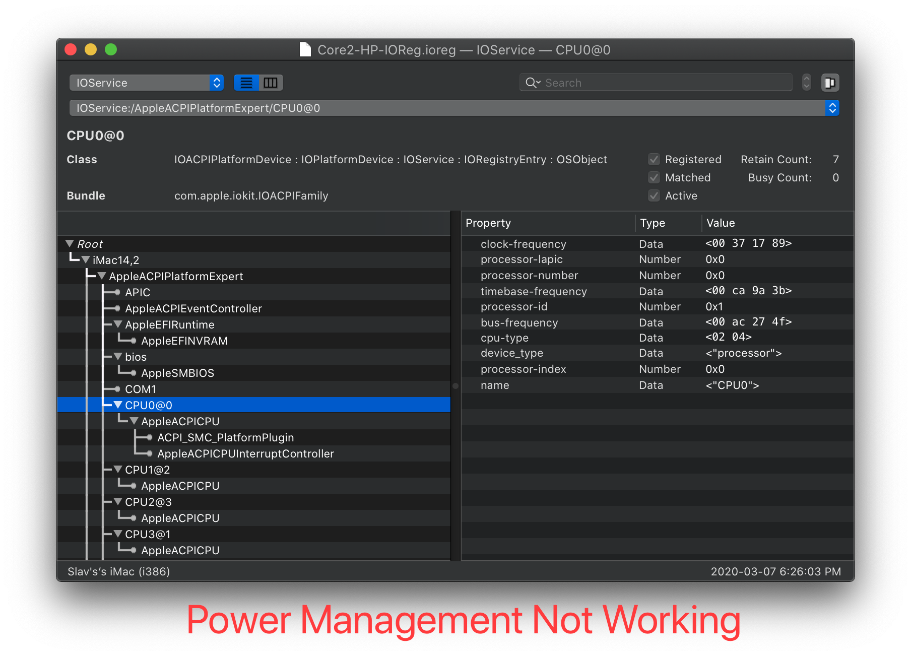 Trong các máy real mac, Apple không khoá MSR 0xE2 register (tức cho phép ghi vào register này). Còn trong các mainboard cho CPU Intel thì có thể mặc định bị khoá (không tìm thấy CFG-LOCK trong bios nghĩa là mặc định khoá), đa số laptop đều bị khoá. Khi macOS Kernel cố ghi vào register này nhưng nó bị khoá mất rồi thì sẽ gây Kernel Panic. Giải pháp khi không tắt được CFG-LOCK là patch AppleIntelCPUPowerManagement.kext lẫn Kernel để tránh ghi vào MSR 0xE2 register.