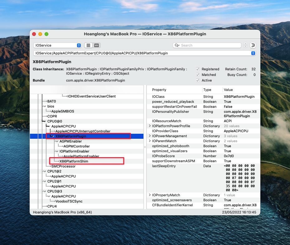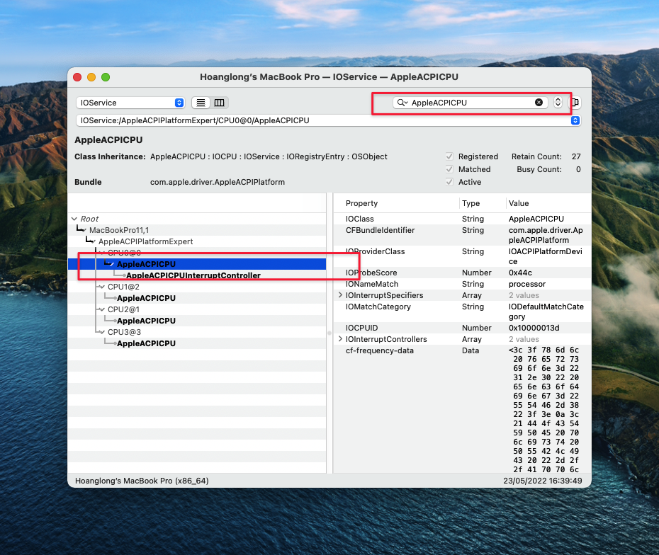B2: Mở ioreg lên và tìm kiếm AppleACPICPU