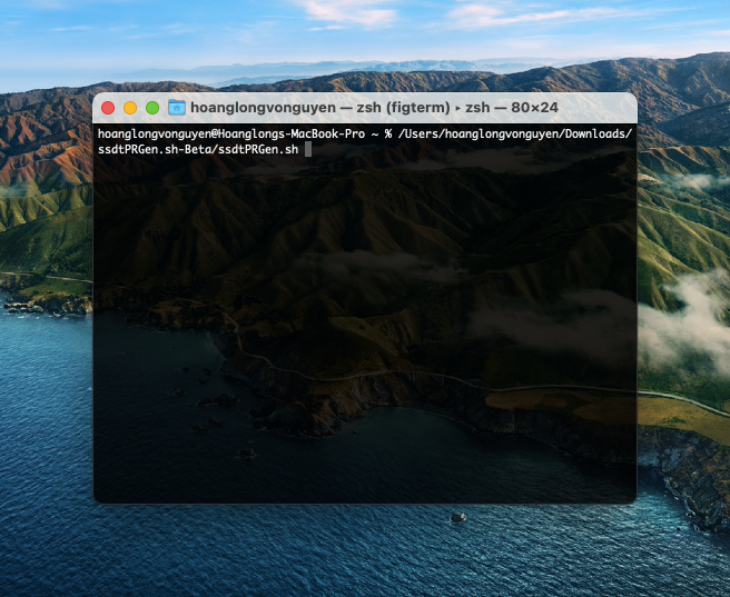 B4: Kéo file ssdtPRGen.sh vào terminal và nhấn enter
